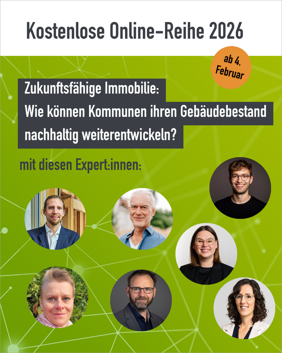 Wie halten Sie den kommunalen Gebäudebestand auf dem besten Stand und sparen Energie? Dabei unterstützt diese kostenlose Online-Veranstaltungsreihe. Sie liefert wertvolle Tipps und Informationen, um die energetische Sanierung und den energieeffizienten Betrieb öffentlicher Gebäude wie Rathäuser, Schulen oder Sporthallen schneller und besser umzusetzen.