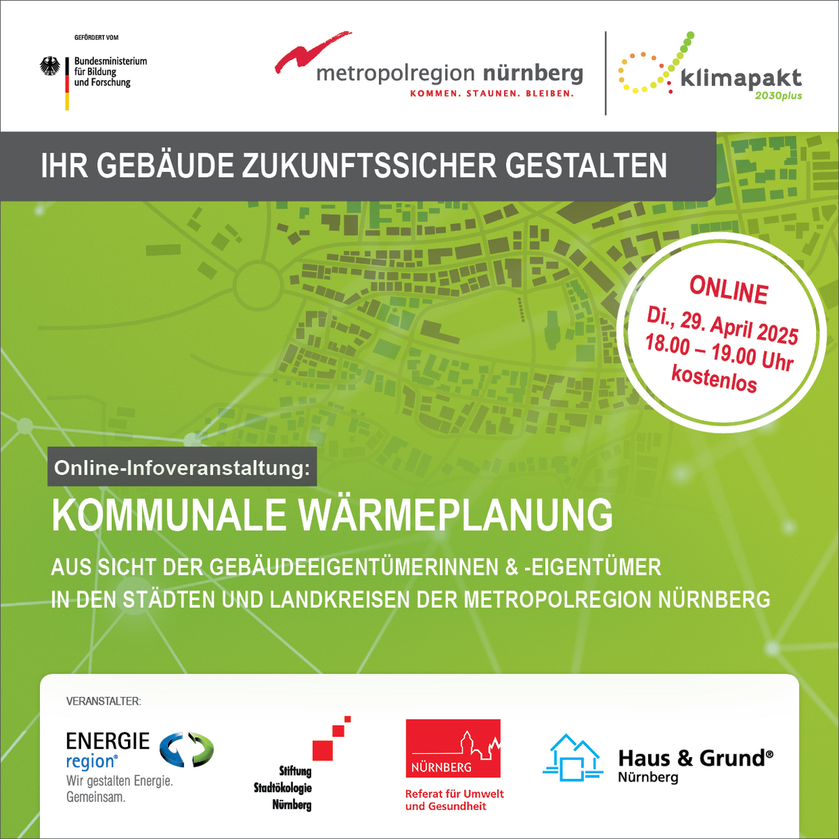 Die Veranstaltung ist Teil der Veranstaltungsreihe "Energetische Sanierung: Ihr Gebäude zukunftssicher gestalten" im Rahmen des Projekts Klimapakt2030plus. Sie wird gemeinsam von der ENERGIEregion Nürnberg e.V. und dem Initiativkreis „Wohnen & Energie“ des Forums „Klimaschutz und nachhaltige Entwicklung“ der Metropolregion Nürnberg veranstaltet.