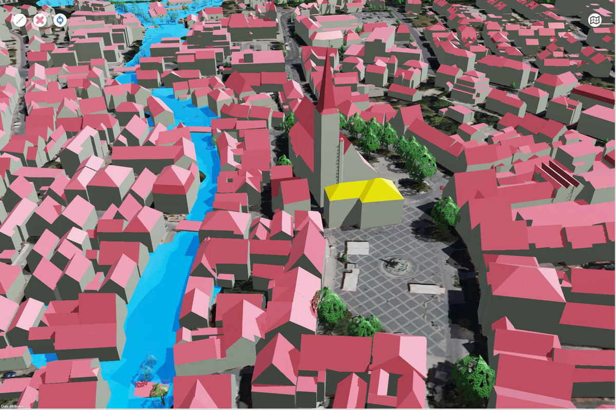 Der „digitale Zwilling“ der Stadt Schwabach ist ein GIS-basiertes Tool, mit dem man bei Planungsprozessen zum Beispiel Klimaveränderungen effizient berücksichtigen kann. Er unterstützt dabei, wenn es darum geht, innerstädtischen Hitzeorten entgegenzuwirken oder auf Niederschlagsereignisse schnell reagieren zu können.
